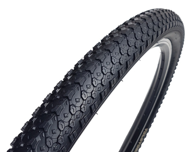 Apró bütykös, terepmintás kialakítású gumi első és hátsó kerékre.